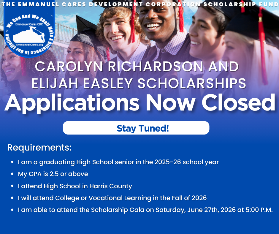 Emmanuel Cares Community Development Corporation is a faith-based nonprofit organized to serve the citizens of Northeast Houston (Houston/Trinity Gardens) and the Greater Houston Community through education, training, supportive services and employment opportunities offered for children, youth, adults, and seniors.